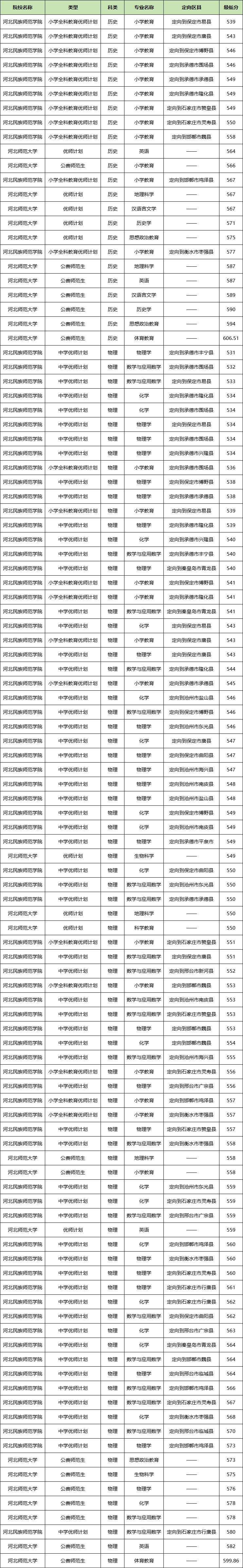 1、地方公费定向师范生院校:河北师范大学、河北民族师范学院。