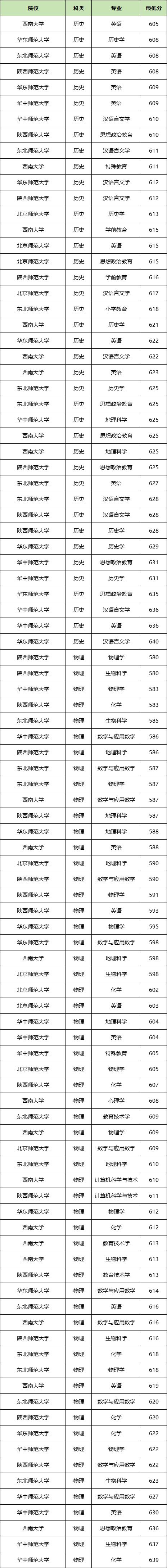 上述为各校各科类最低分,即上国家公费师范生院校至少要在580分以上。不过这还只是院校最低分数门槛,不是专业最低分数门槛,为帮助大家了解各公费师范生专业分,本文整理了国家公费师范生分数表格,供参考。