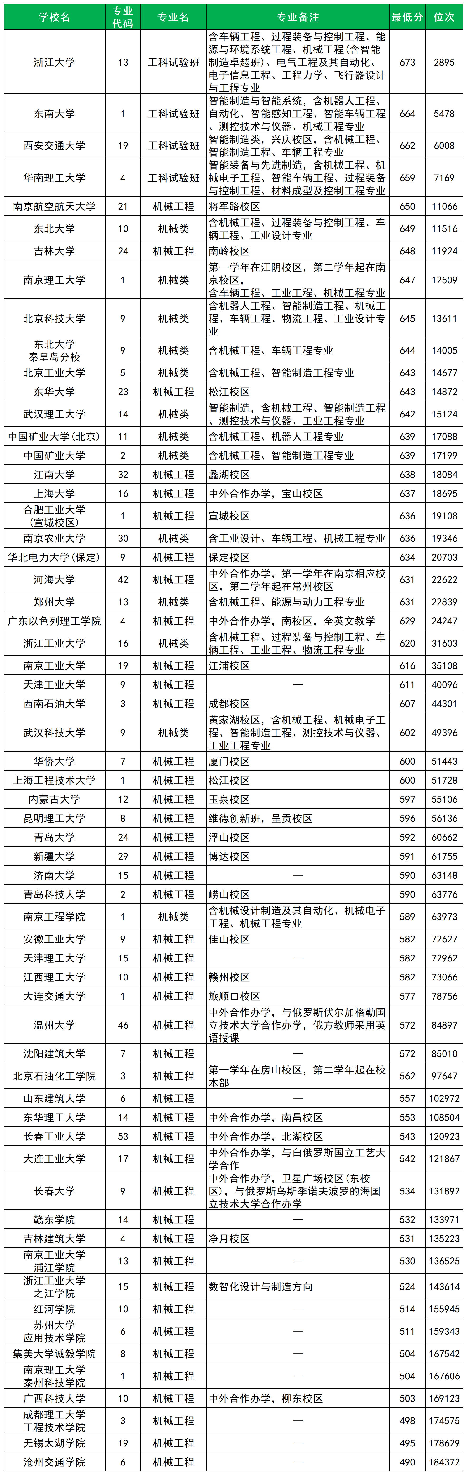 二、机械工程专业分数线