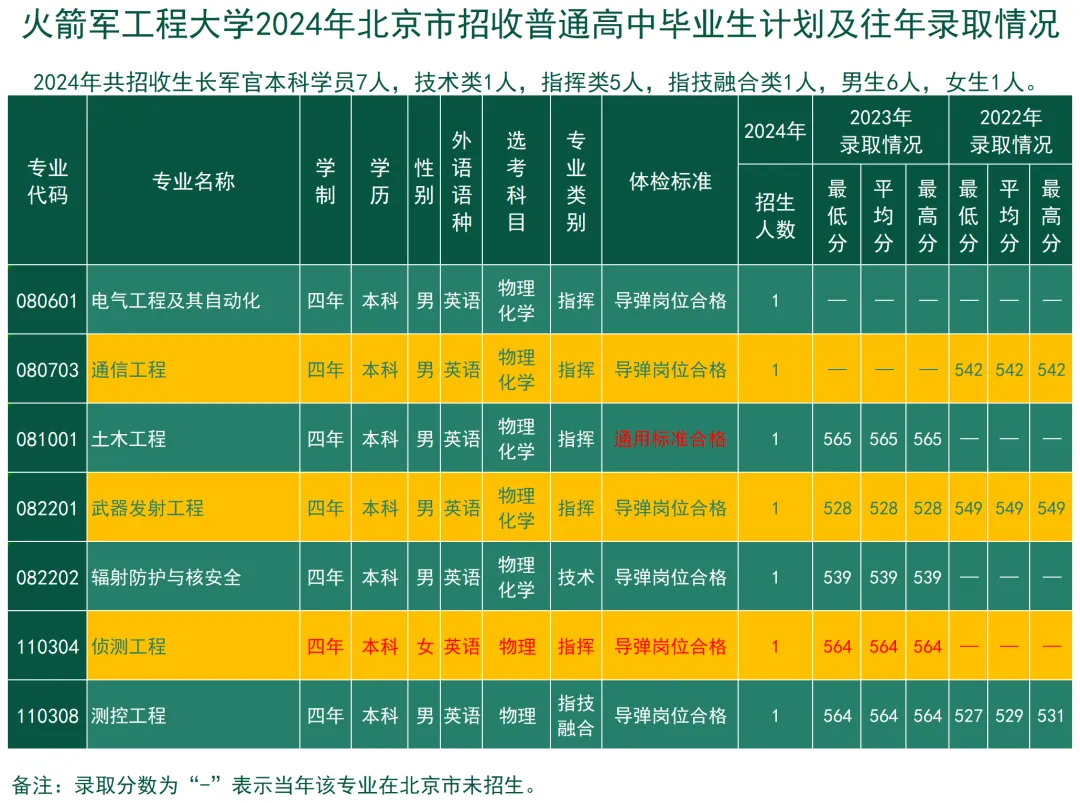 2025年火箭军工程大学生计划暂未出炉,本文会在官方信息公布后及时收集更新内容。下面附上2024年招生计划信息,暂供参考: