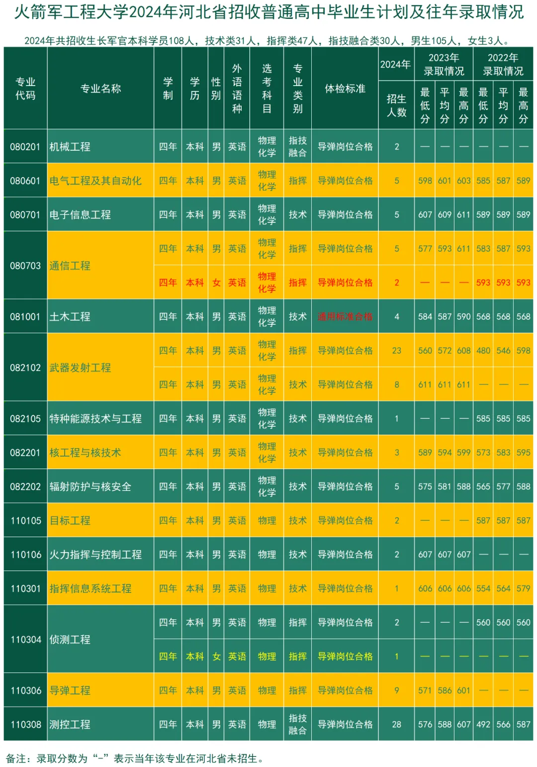 本文仅整理了2024火箭军工程大学在全国各省招生的最低录取分数线,如下: