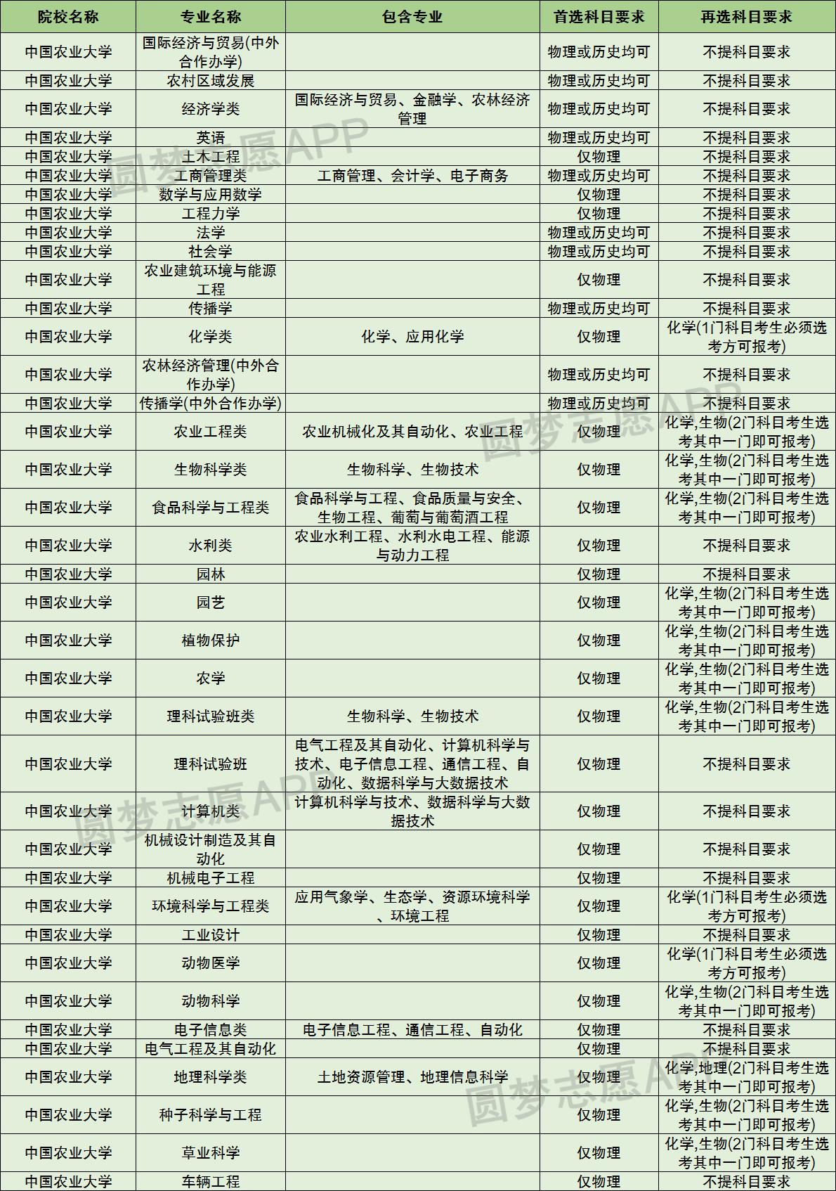 中国农业大学简称“中国农大”,位于北京,相信也是很多同学的目标理想,了解中国农业大学各专业的新高考选科要求,是报考中国农大的第一步。本期小编将介绍中国农业大学所有专业3+1+2模式新高考选科要求,包括中国农业大学王牌专业选科要求,供同学们参考。
