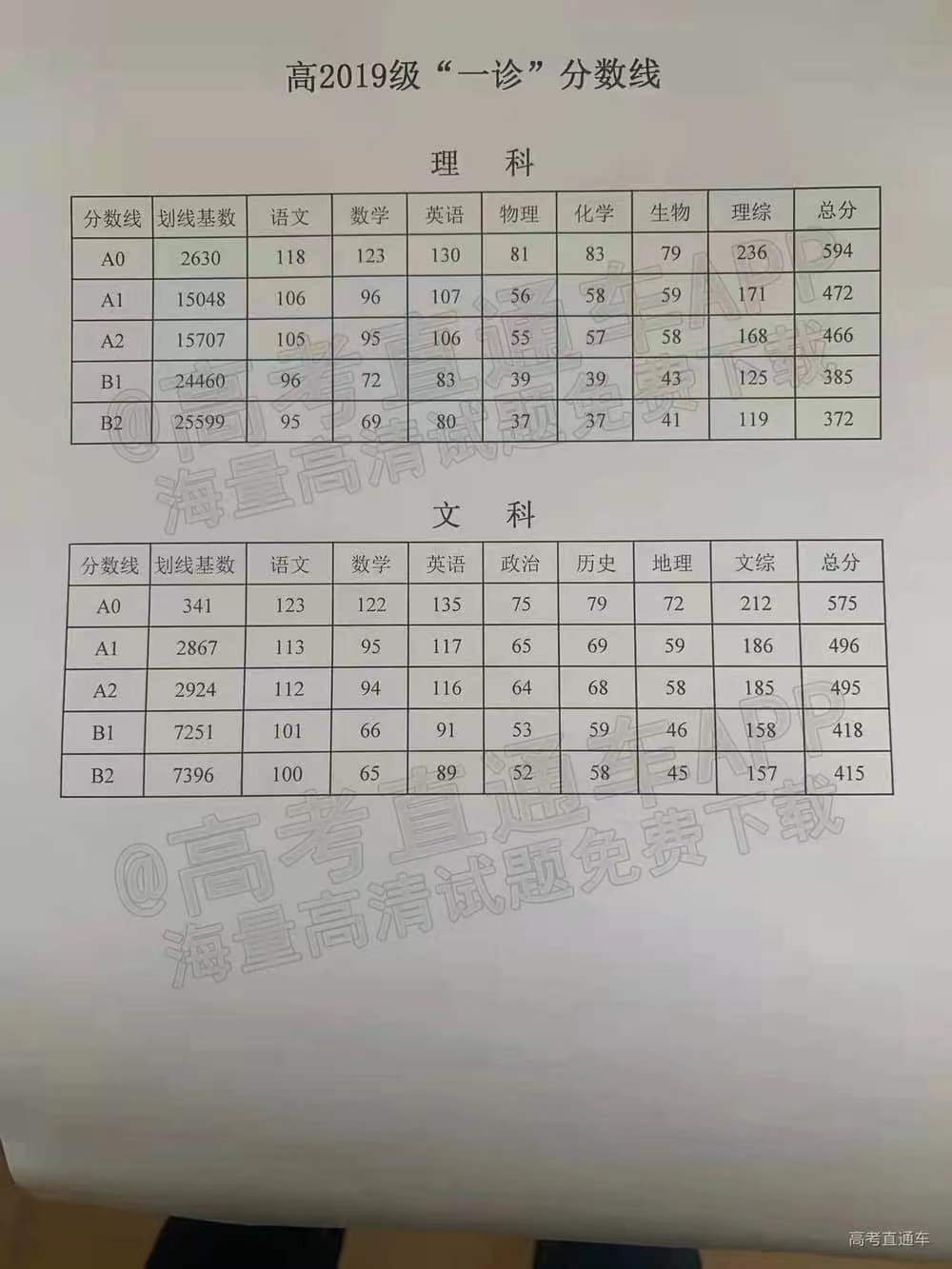 理科:A0线为594分、A1线为475分、A2线为471分、B1线为393分、B2线为376分