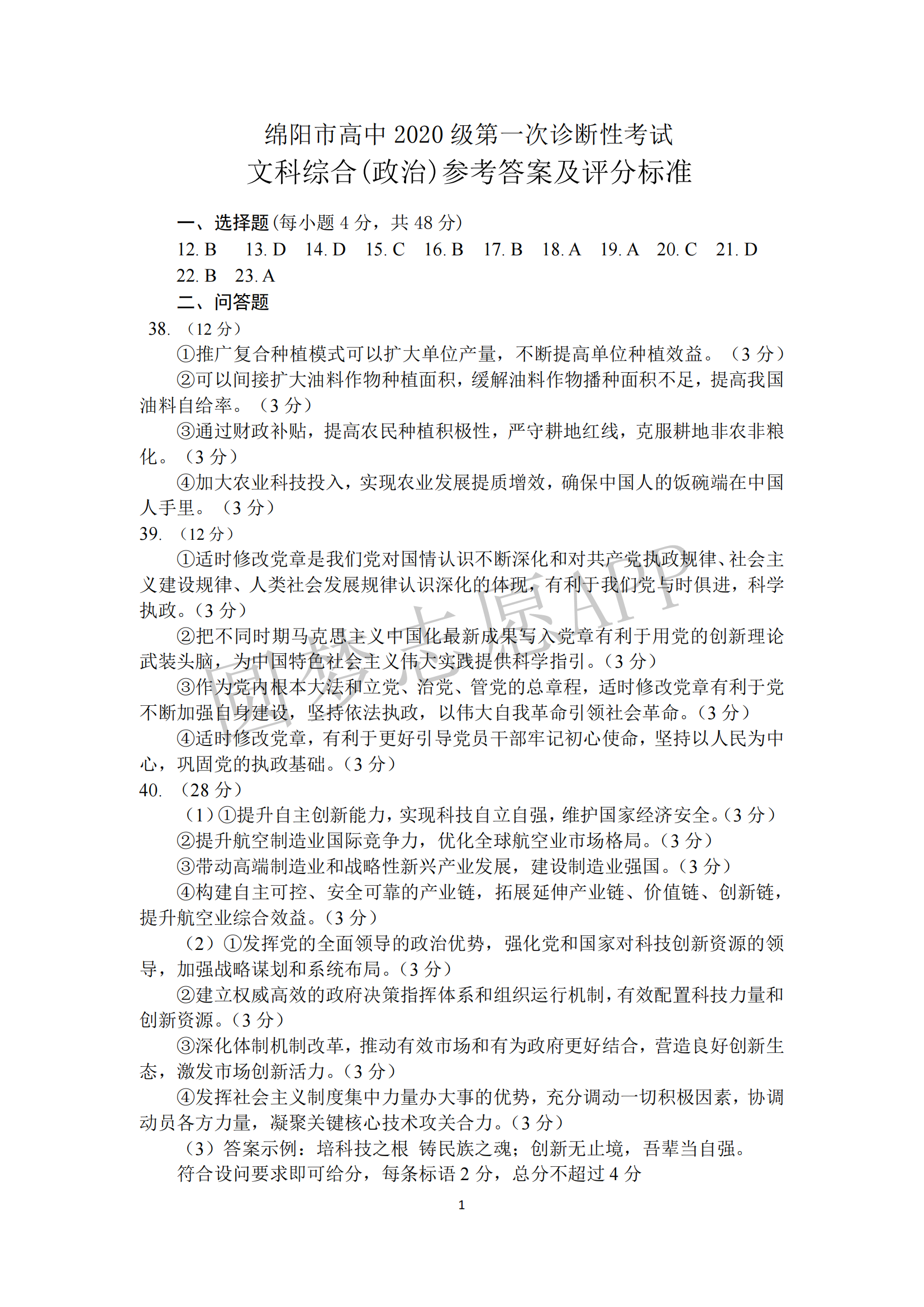 本文将公布2023绵阳一诊的文科综合试卷及答案,供大家查阅。小编预祝全国所有考生高考顺利,马到成功。