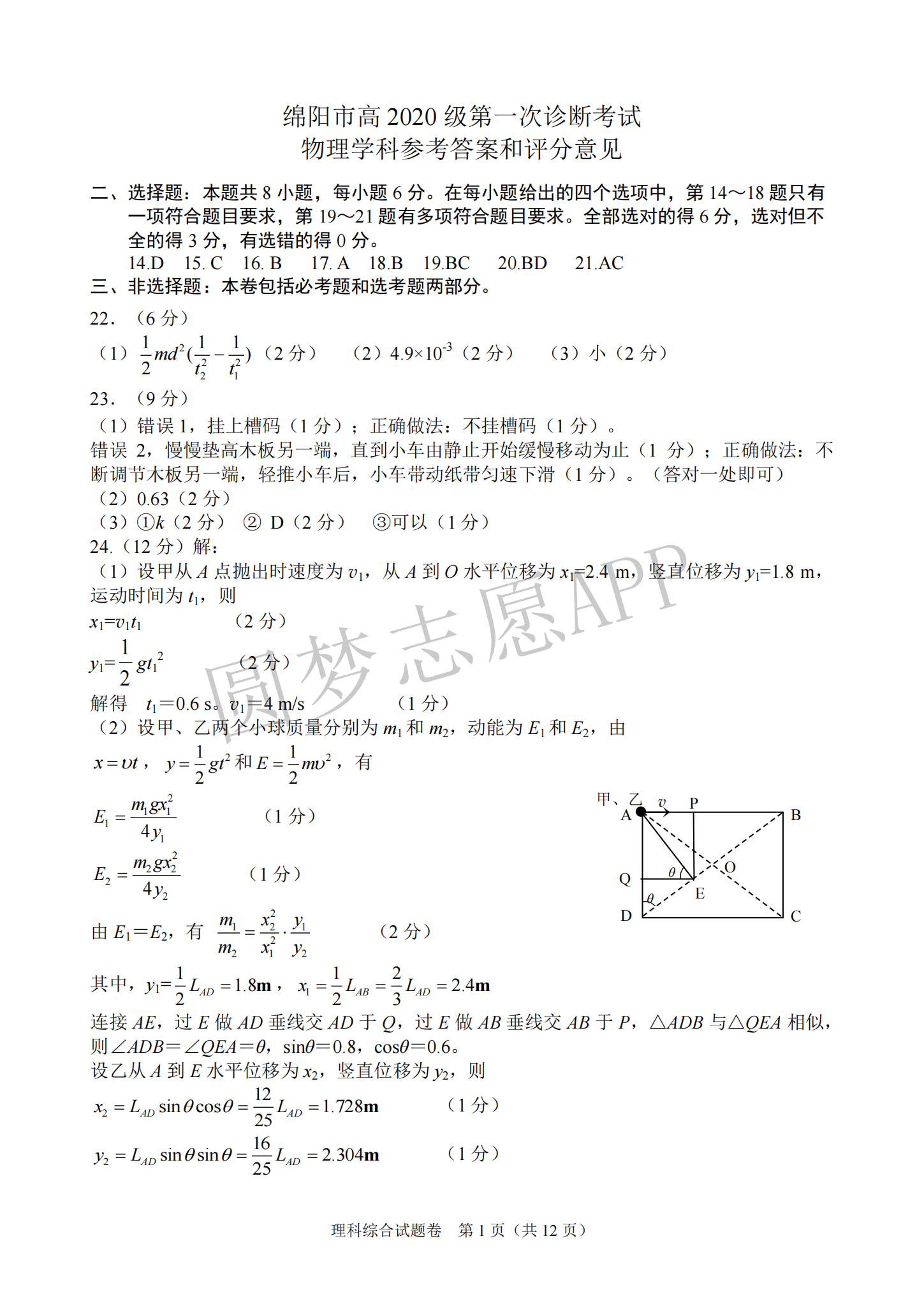 本文将公布2023绵阳一诊的理科综合试卷及答案,供大家查阅。小编预祝全国所有考生高考顺利,马到成功。