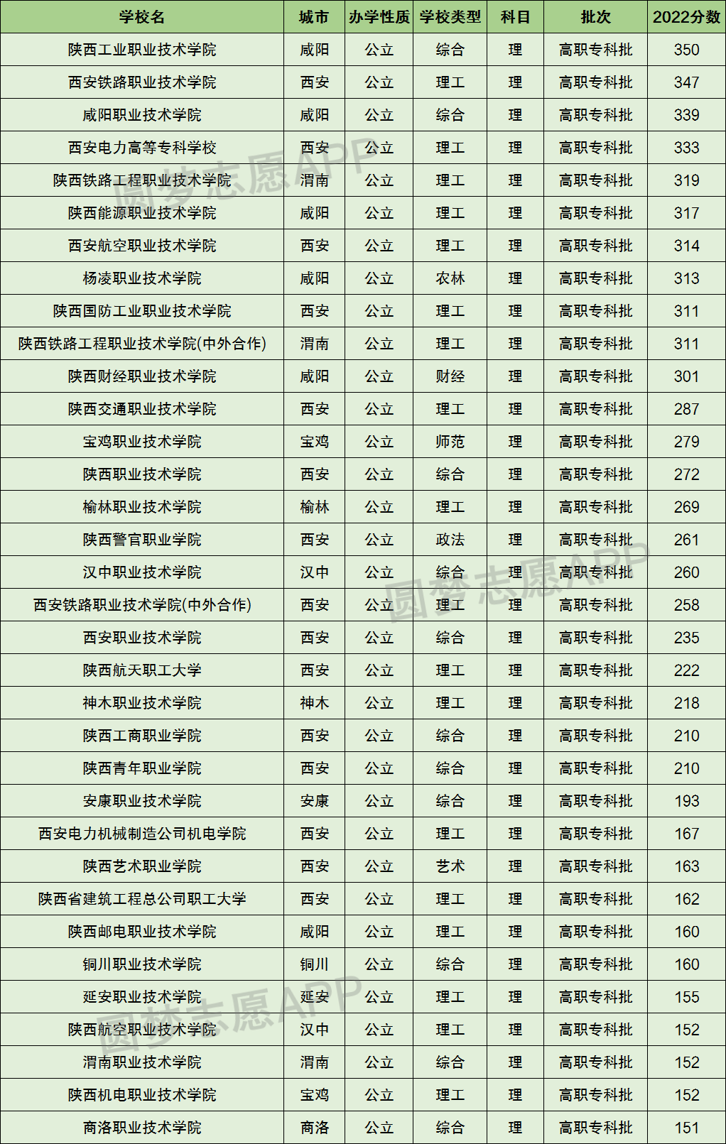 以下是小编根据圆梦志愿APP提供的数据,为大家整理出的陕西省2022年所有专科学校分数线排名。