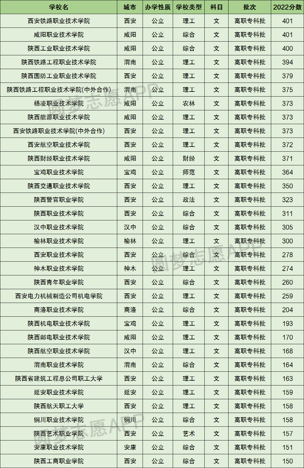 陕西分数线最高的专科学校为西安铁路职业技术学院,最低分为401分。