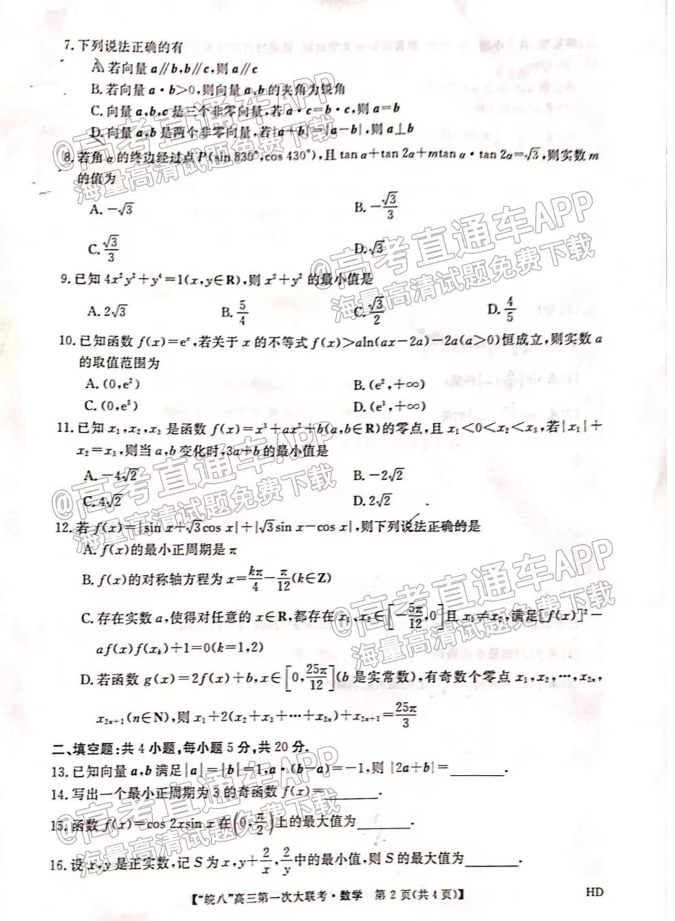 等皖南八校第一次联考文数考试结束后,编辑会立即对文章中关于“2023皖南八校高三第一次联考文数试卷及答案”的相关内容做更新处理,这样各位考生就可以在考后马上查看到2023届皖南高三八校联考文数开始的试题及解析啦。
