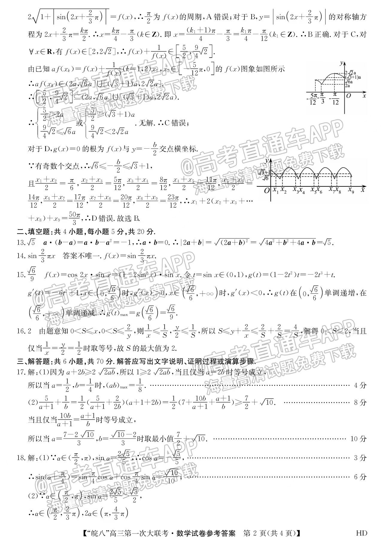 2、理科数学-2023皖南八校第一次联考理数试卷答案