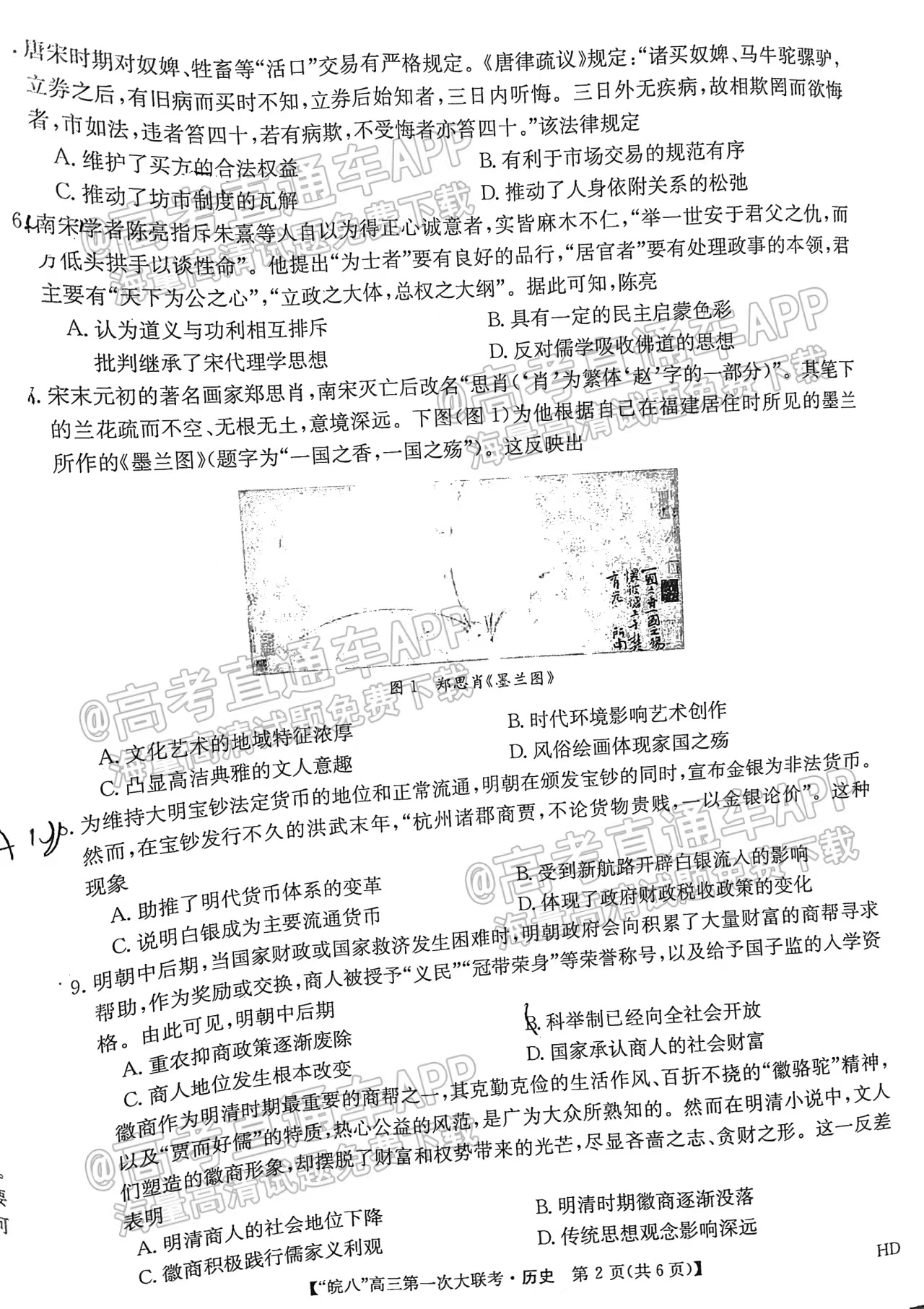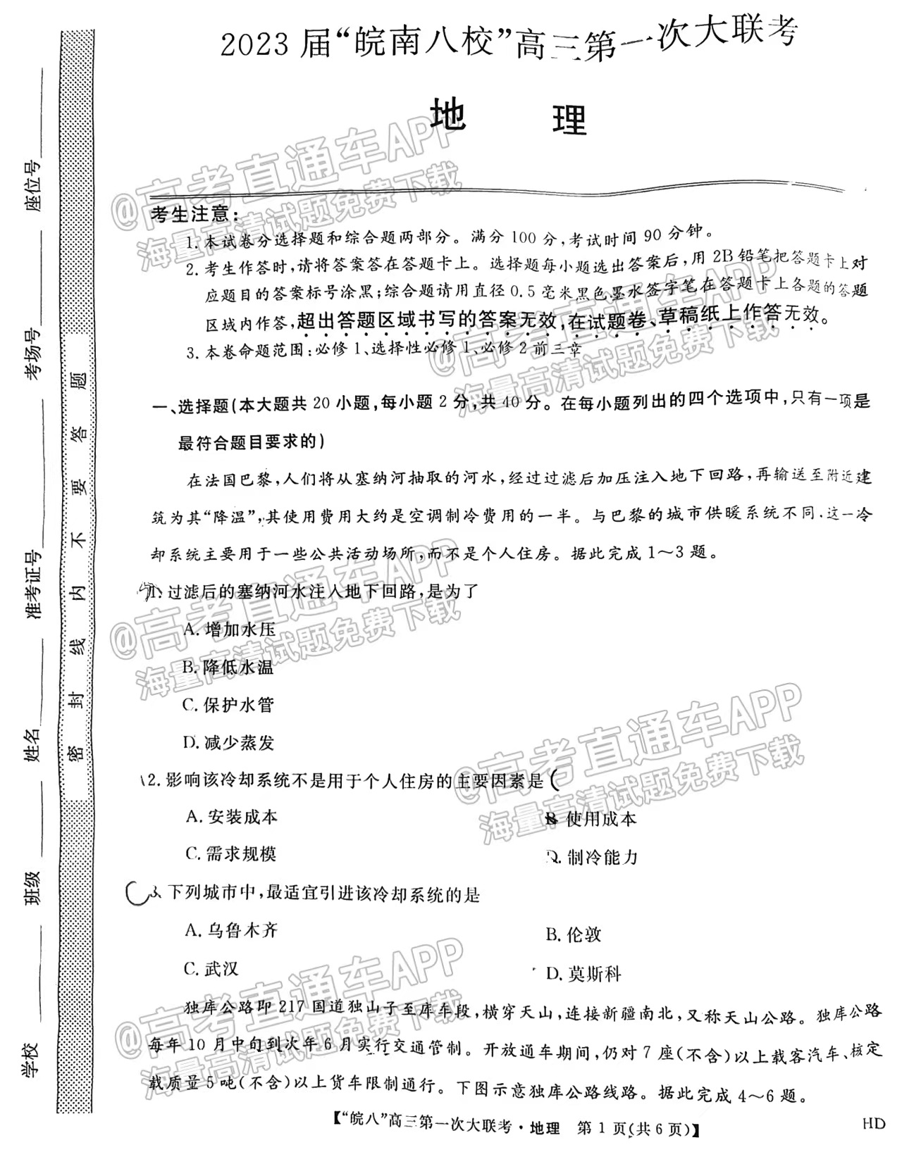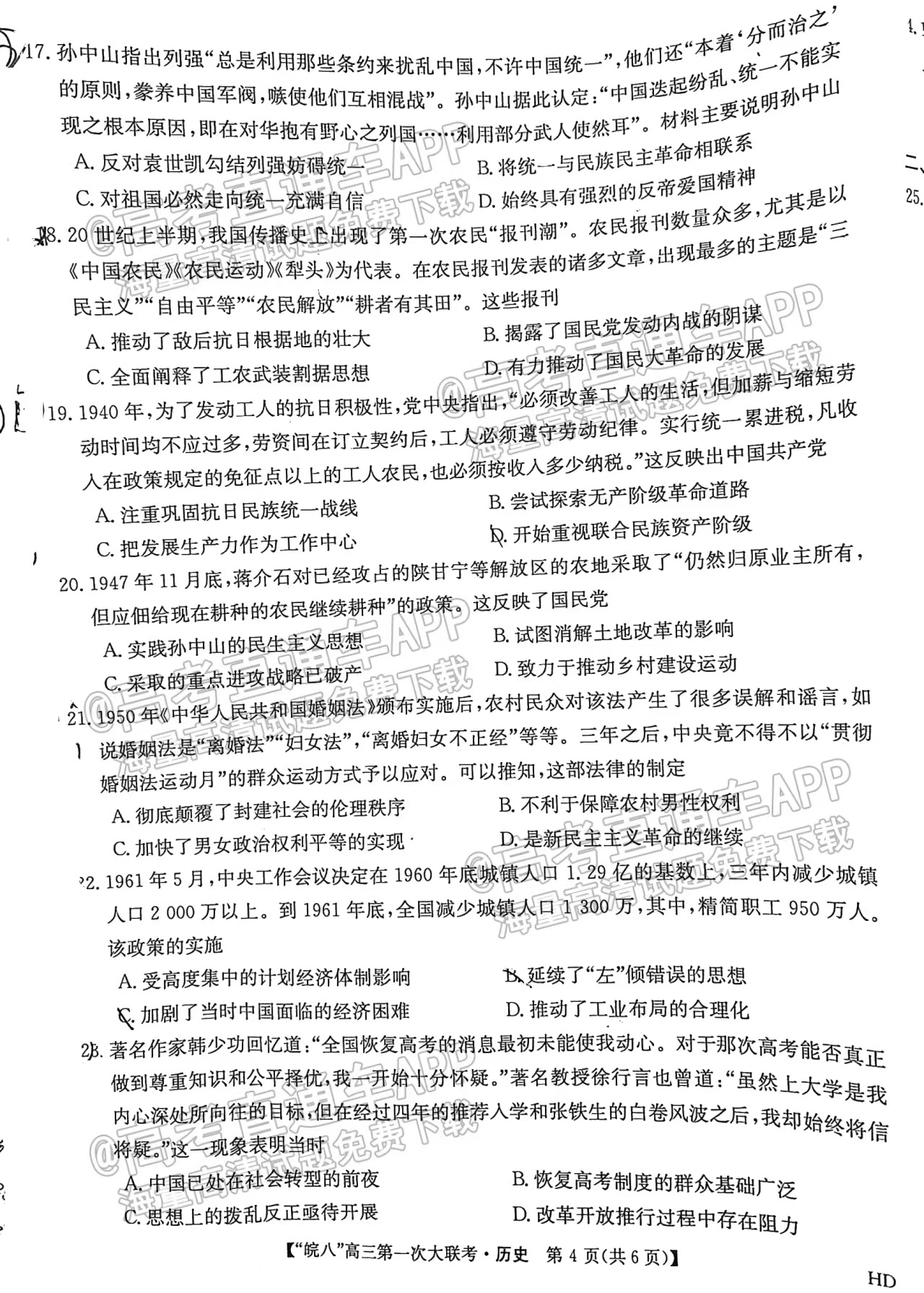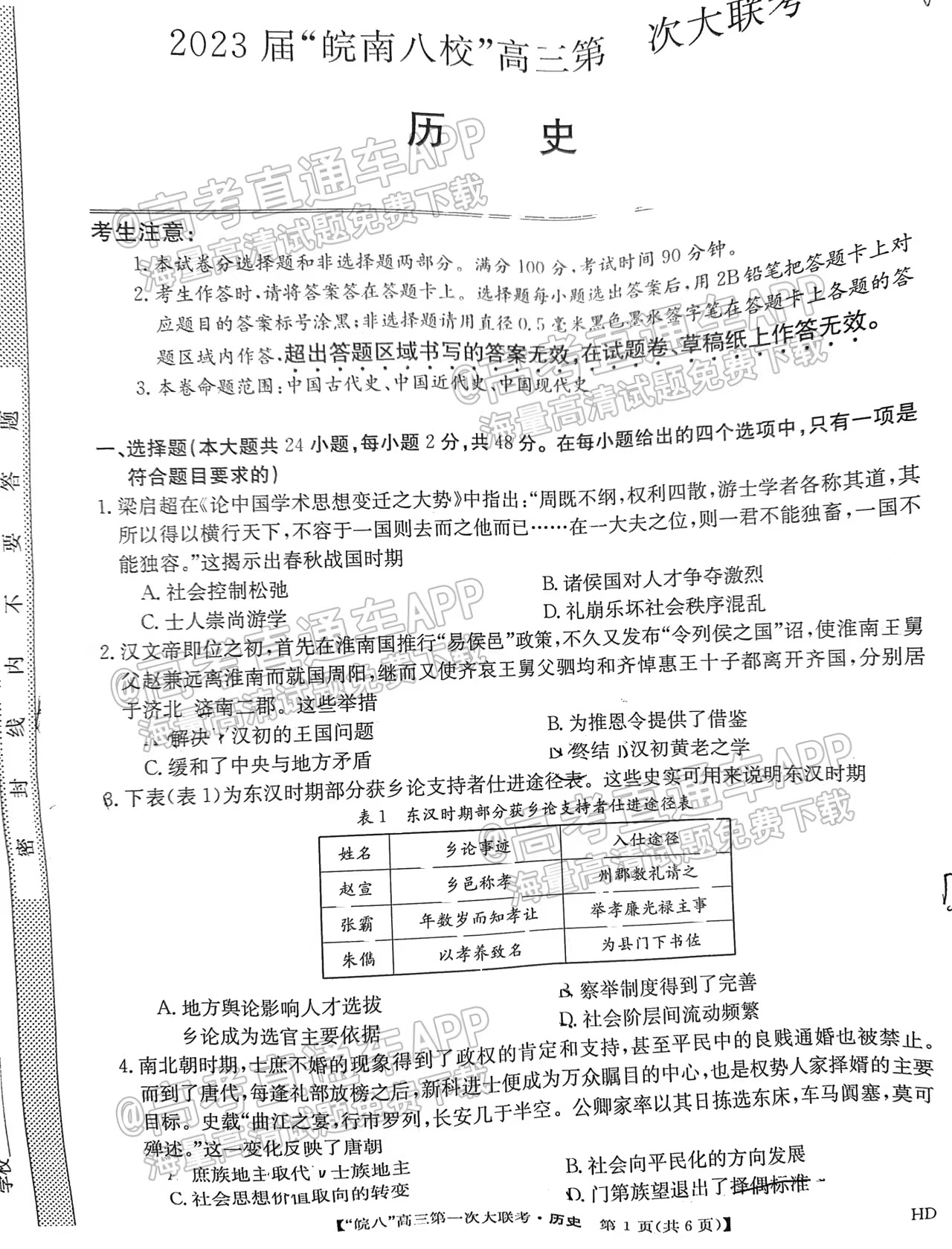 6、文科综合-2023皖南八校第一次联考文综试卷答案