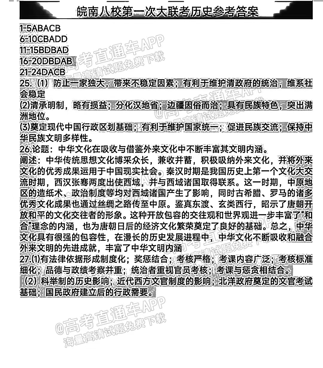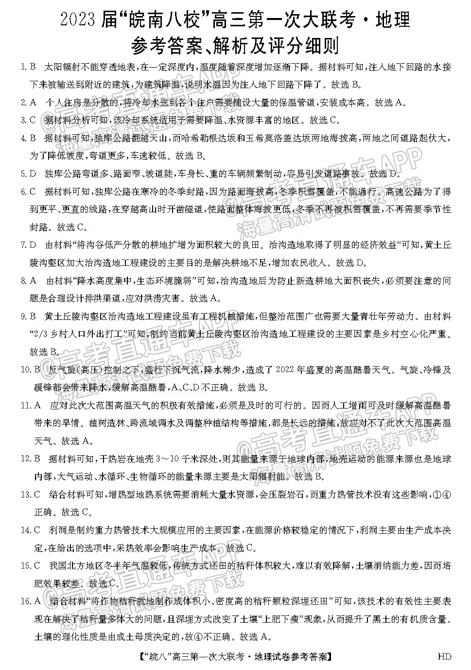 2、皖南八校联考文综答案解析详情