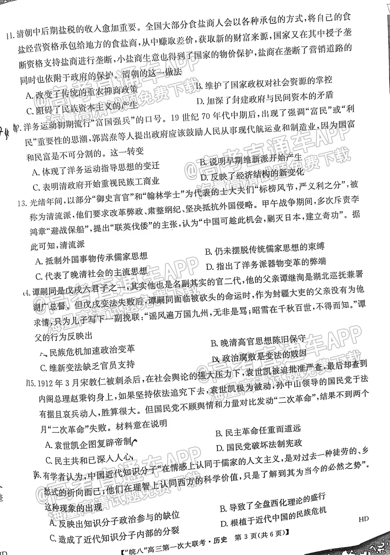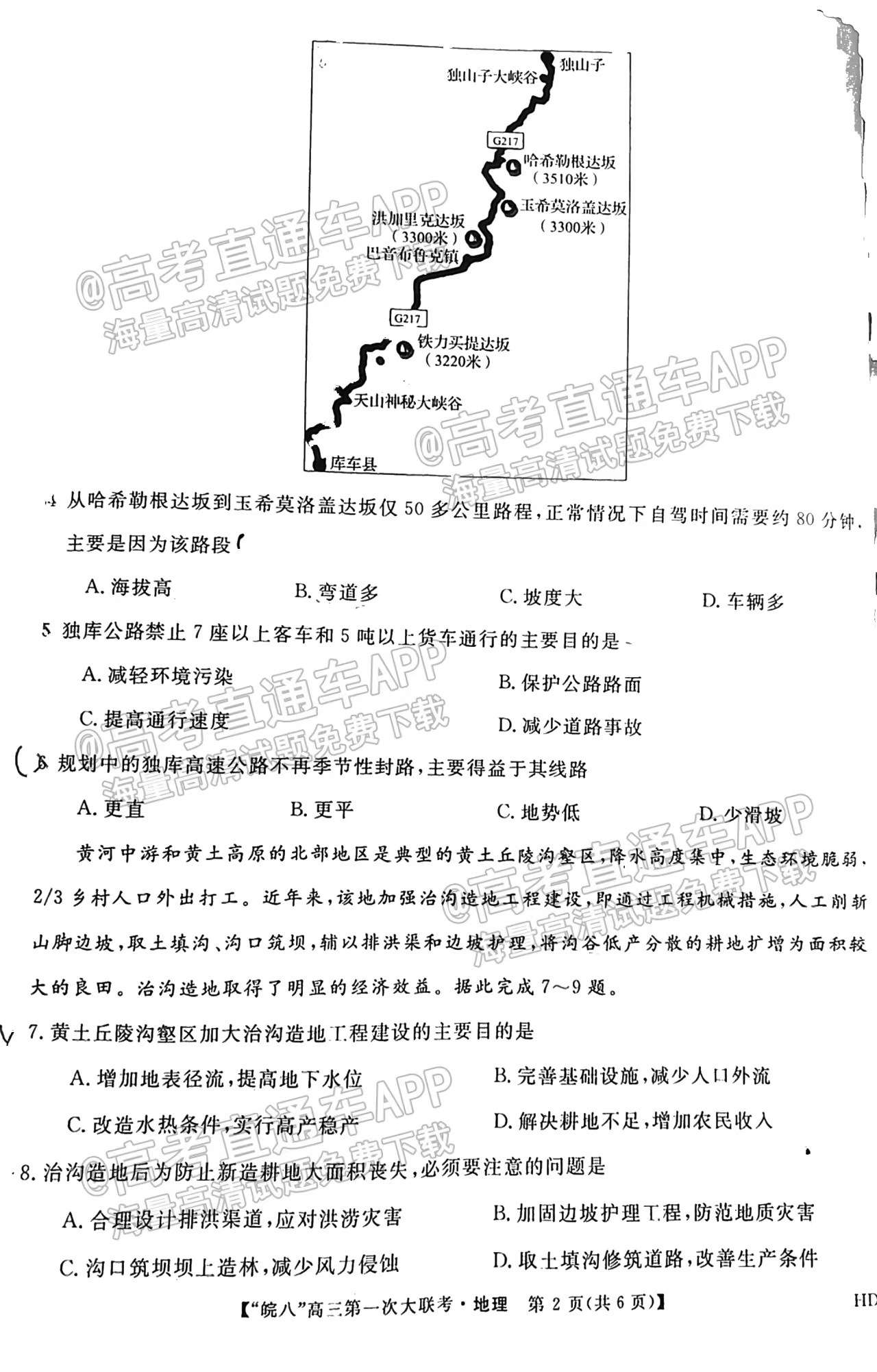 1、皖南八校联考文综试卷试题信息