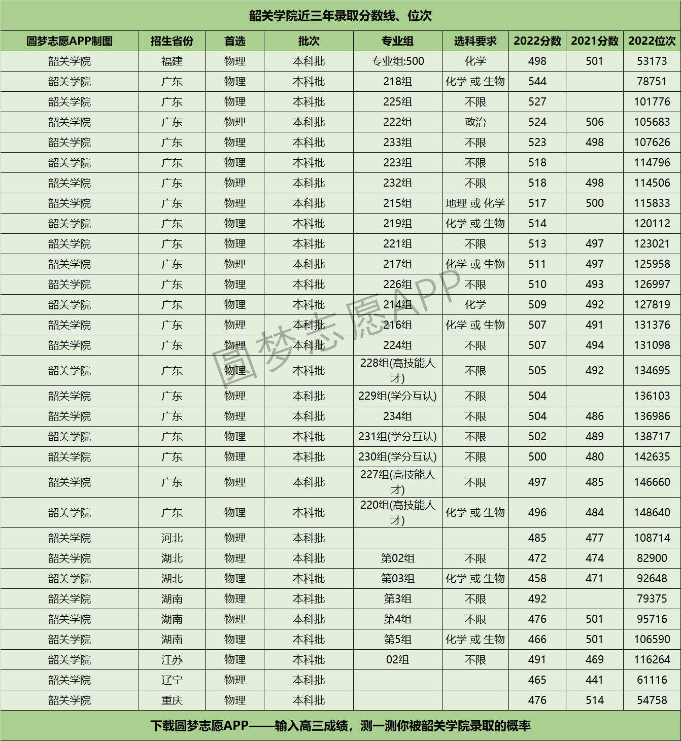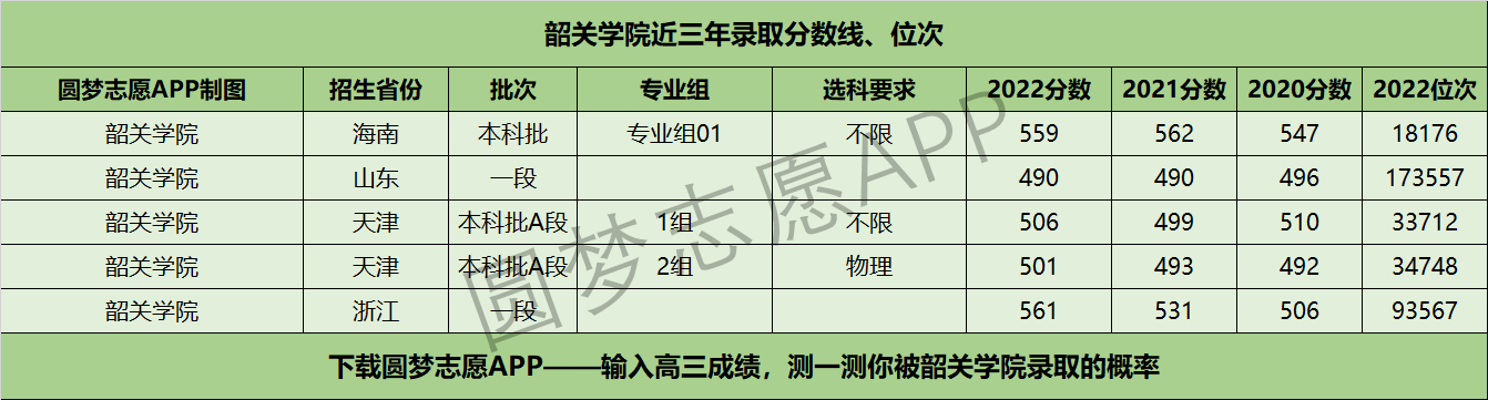 三、韶关学院近年录取分数线及位次【首选物理版】