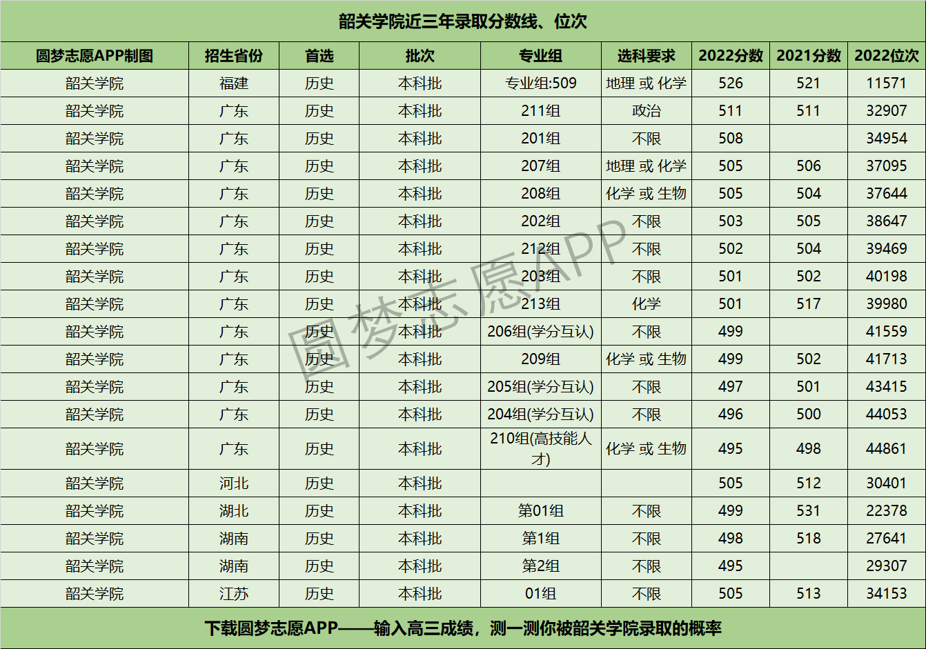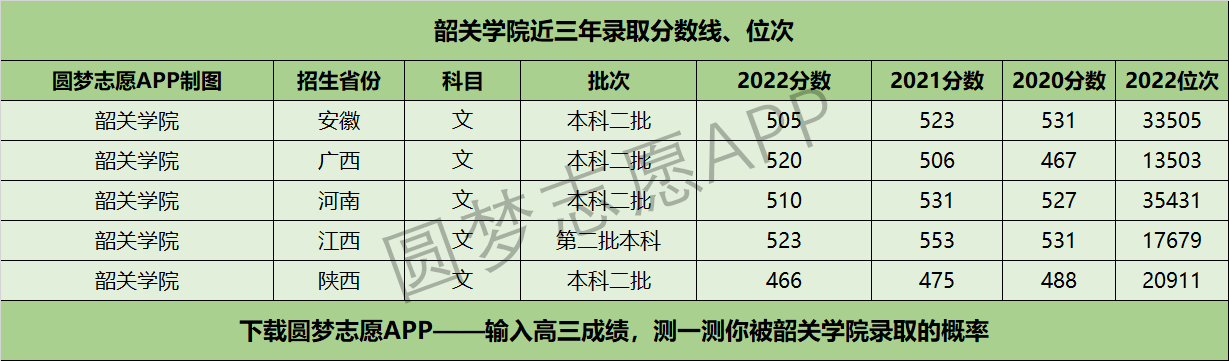 四、韶关学院近年录取分数线及位次【首选历史版】