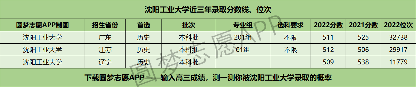 四、沈阳工业大学近年录取分数线及位次【首选历史版】