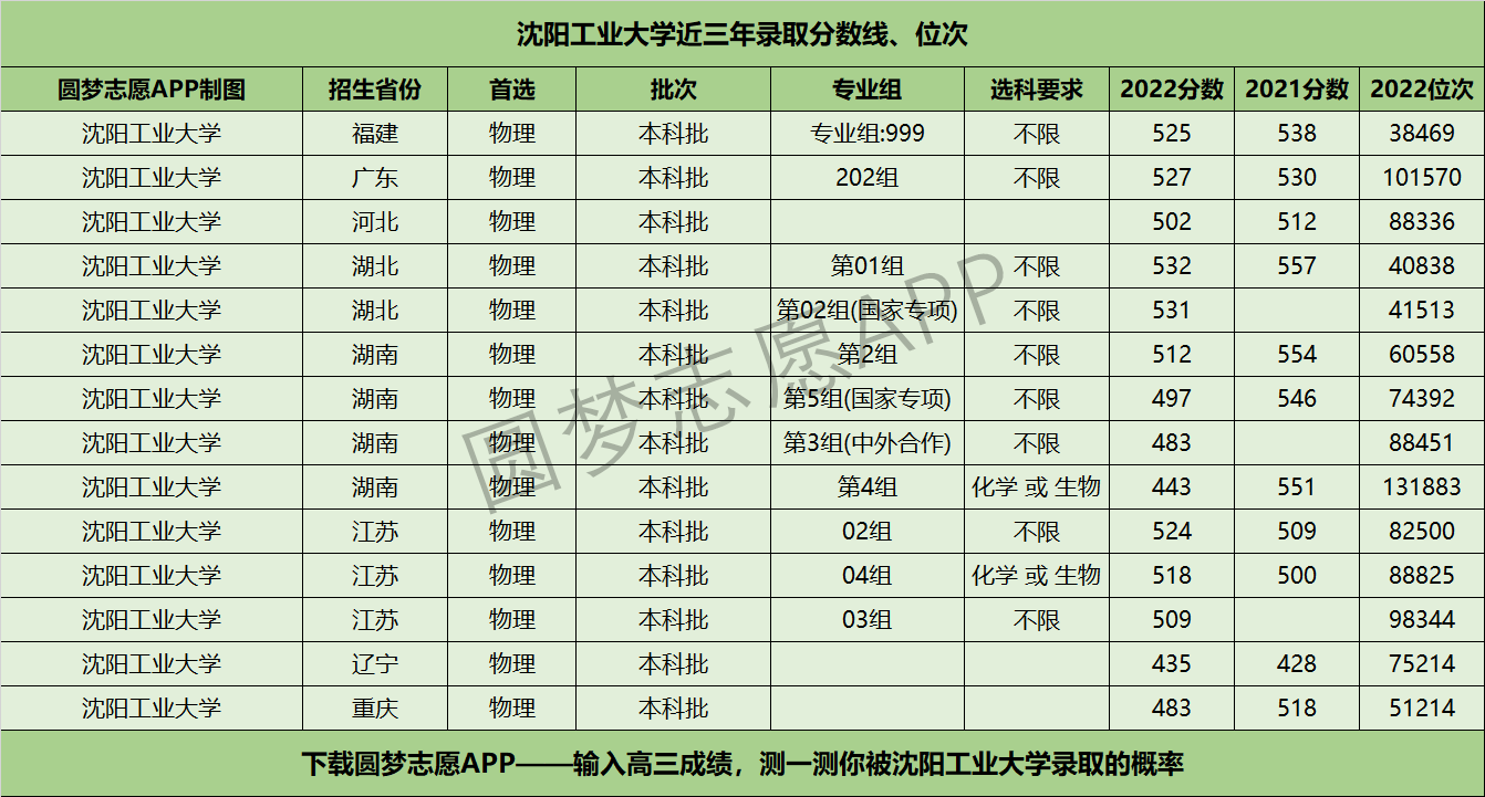 三、沈阳工业大学近年录取分数线及位次【首选物理版】