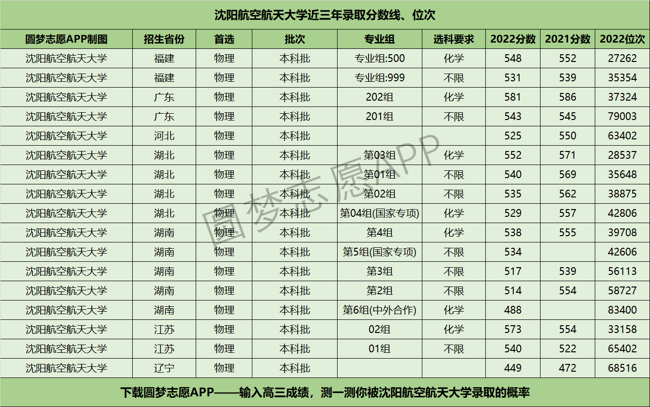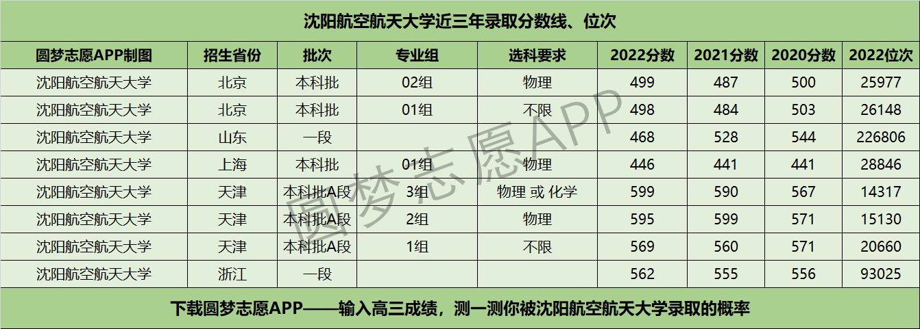 三、沈阳航空航天大学近年录取分数线及位次【首选物理版】
