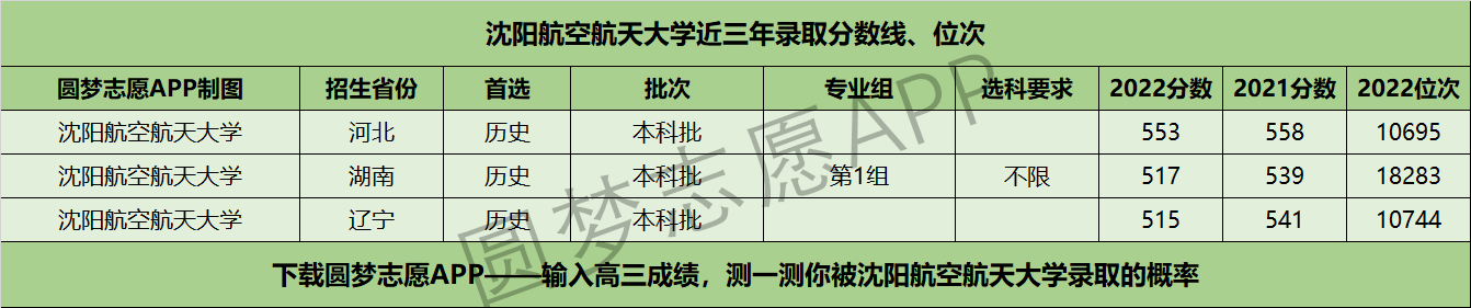 四、沈阳航空航天大学近年录取分数线及位次【首选历史版】