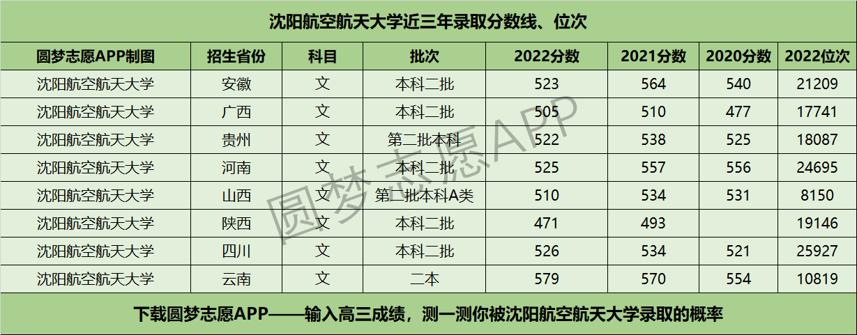 二、沈阳航空航天大学近三年录取分数线及位次【文科版】