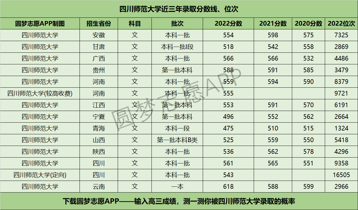 二、四川师范大学近三年录取分数线及位次【文科版】