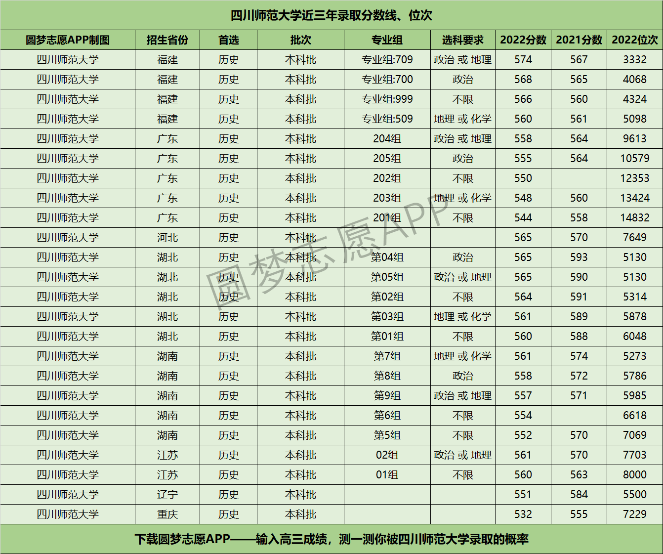 四、四川师范大学近年录取分数线及位次【首选历史版】