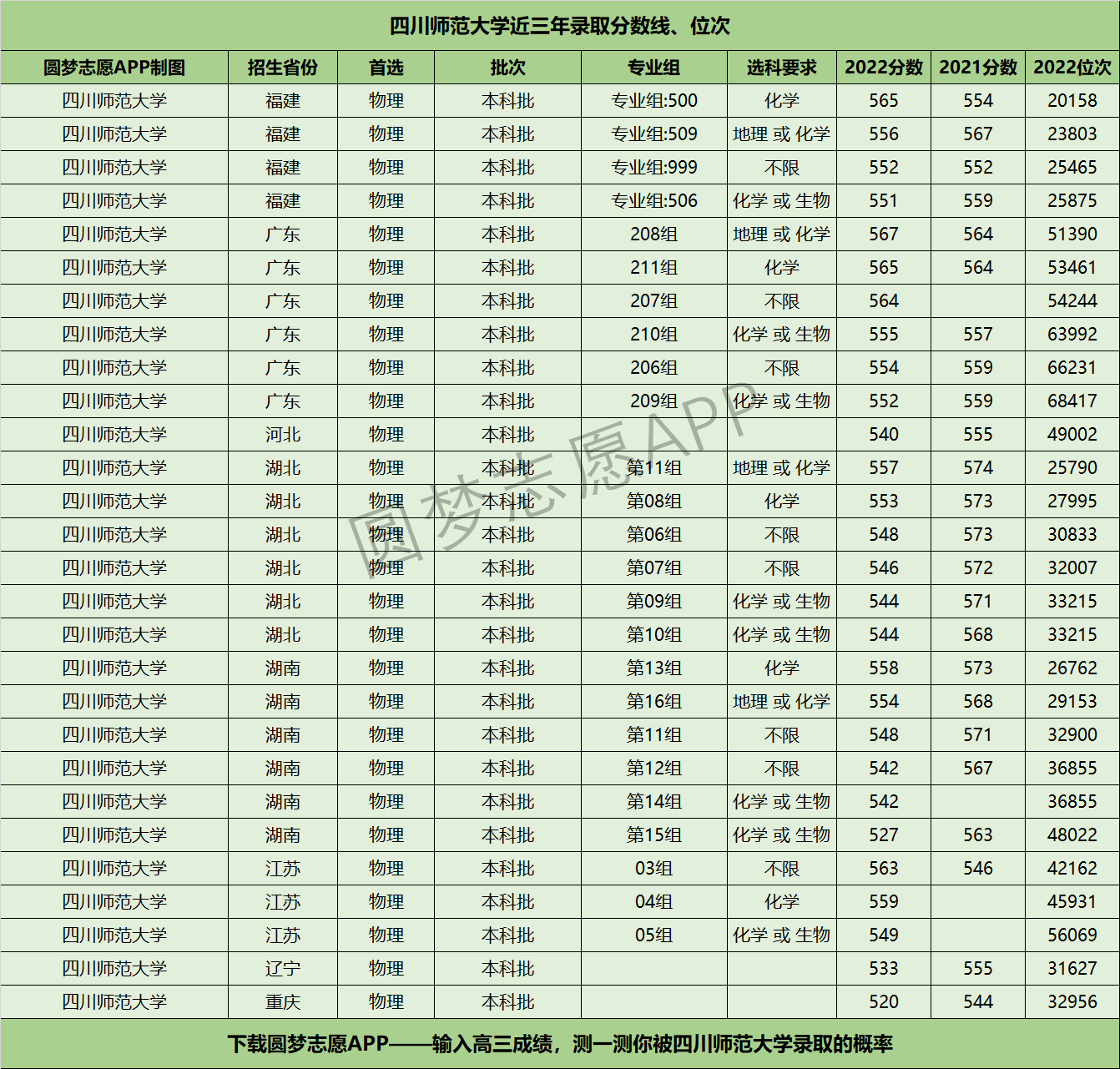 三、四川师范大学近年录取分数线及位次【首选物理版】