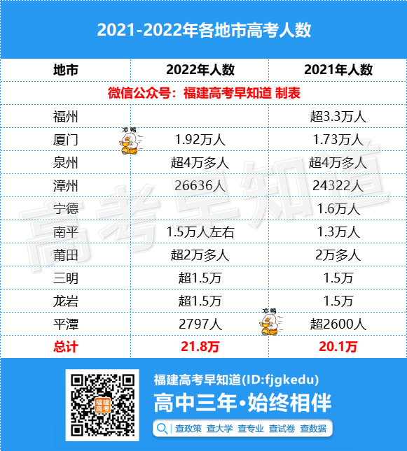 参考往年福建各地市公布的高考人数:福州/泉州/漳州三地市高考人数累计约10万人;