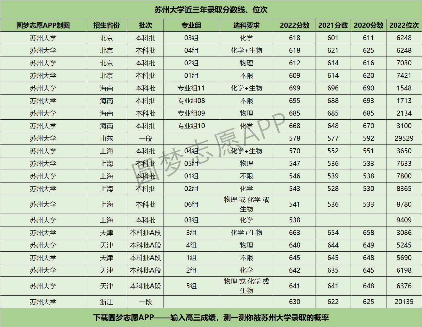 五、苏州大学近年录取分数线及位次【6选3省份】