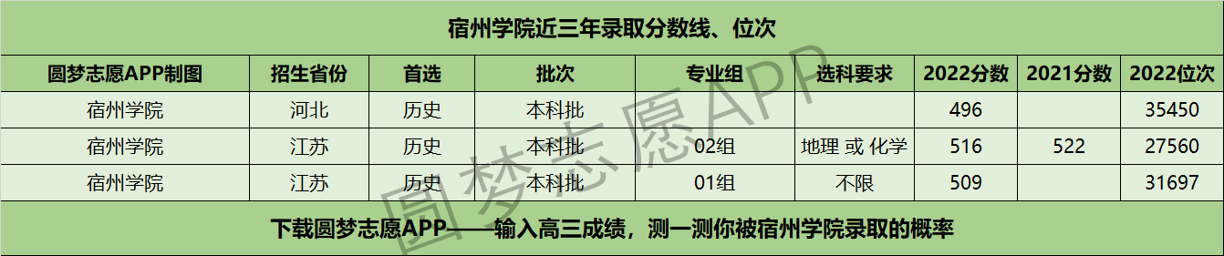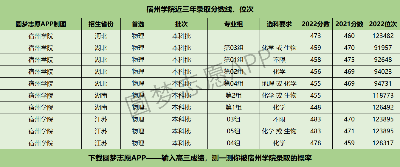 三、宿州学院近年录取分数线及位次【首选物理版】