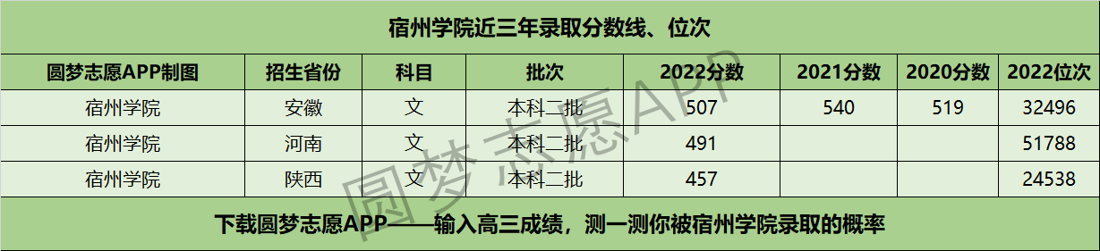 二、宿州学院近三年录取分数线及位次【文科版】