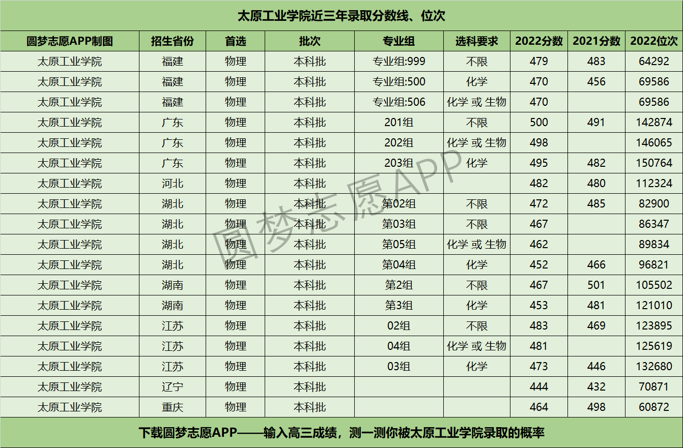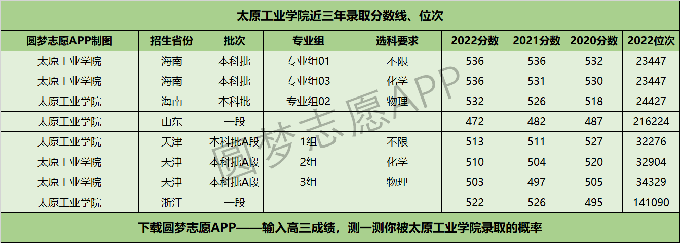 三、太原工业学院近年录取分数线及位次【首选物理版】