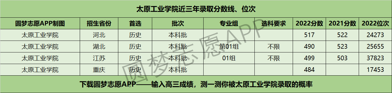 四、太原工业学院近年录取分数线及位次【首选历史版】