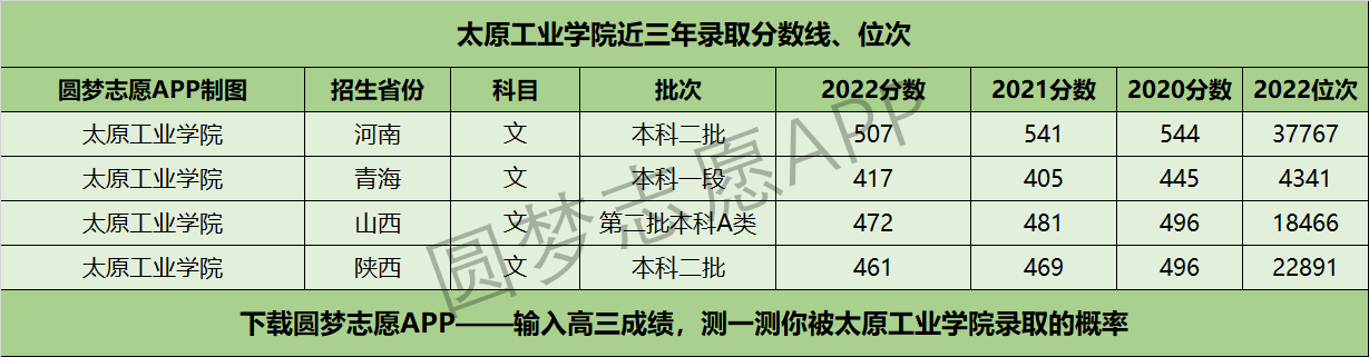 二、太原工业学院近三年录取分数线及位次【文科版】