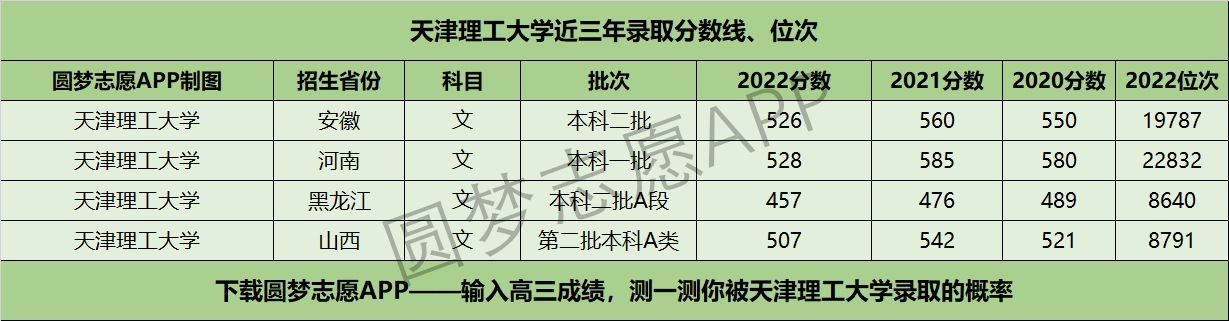 二、天津理工大学近三年录取分数线及位次【文科版】