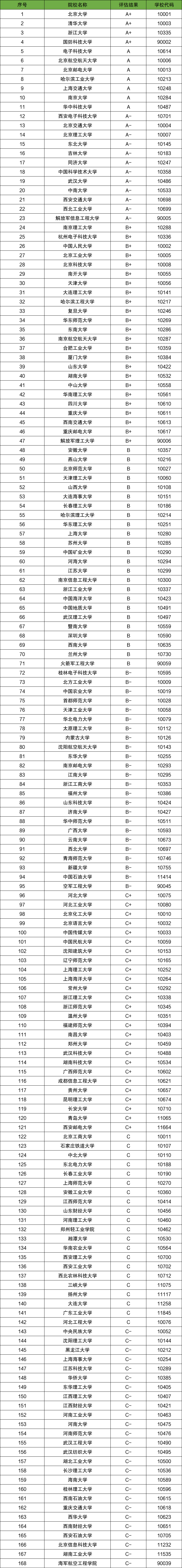 计算机科学与技术学科评估结果排名完整榜单如下: