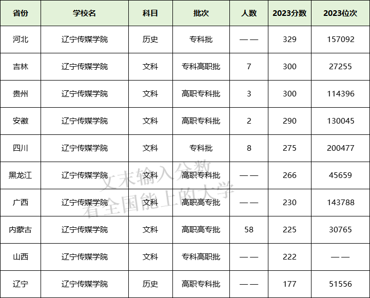 一、辽宁传媒学院专科录取线