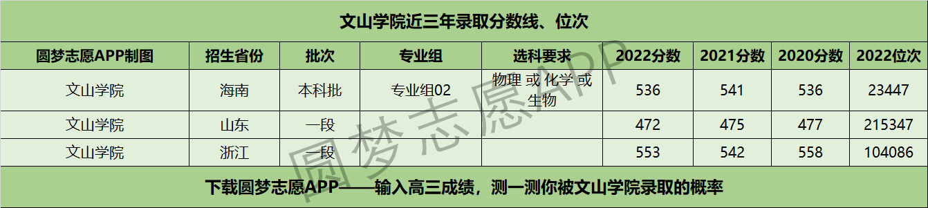 五、文山学院近年录取分数线及位次【6选3省份】