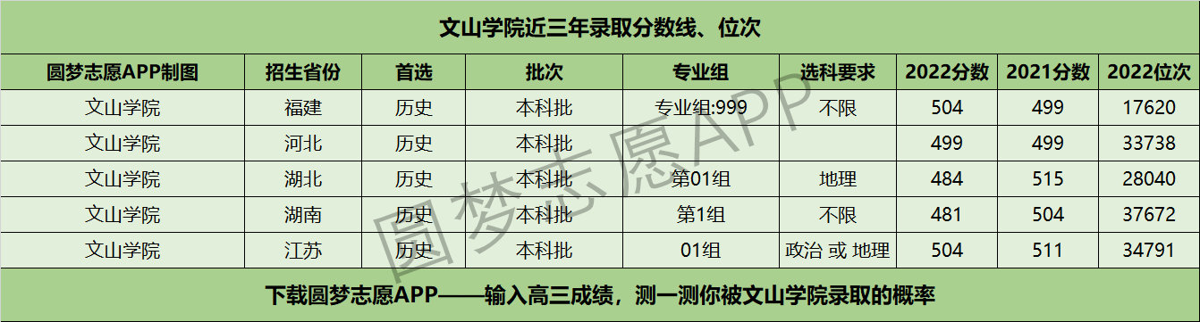 四、文山学院近年录取分数线及位次【首选历史版】