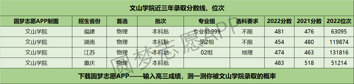 三、文山学院近年录取分数线及位次【首选物理版】