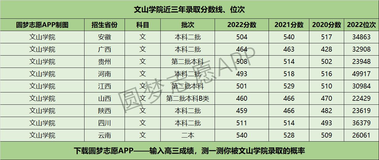 二、文山学院近三年录取分数线及位次【文科版】