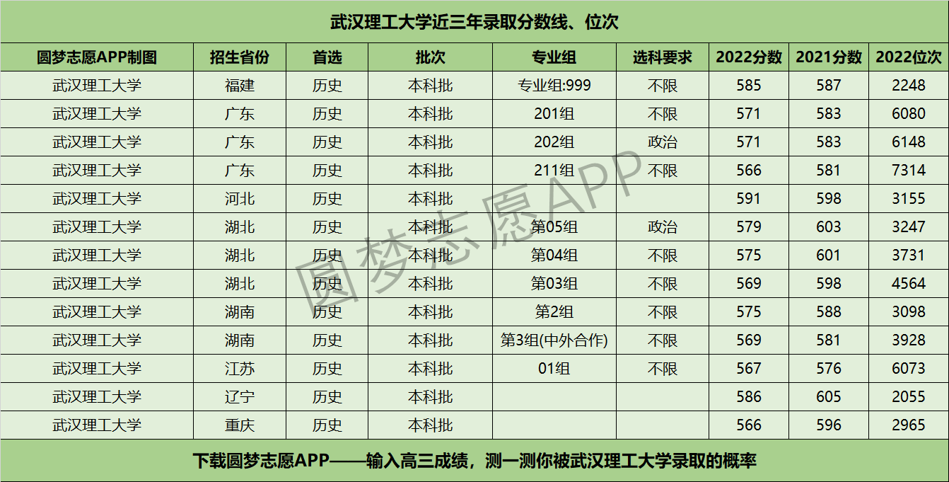 四、武汉理工大学近年录取分数线及位次【首选历史版】