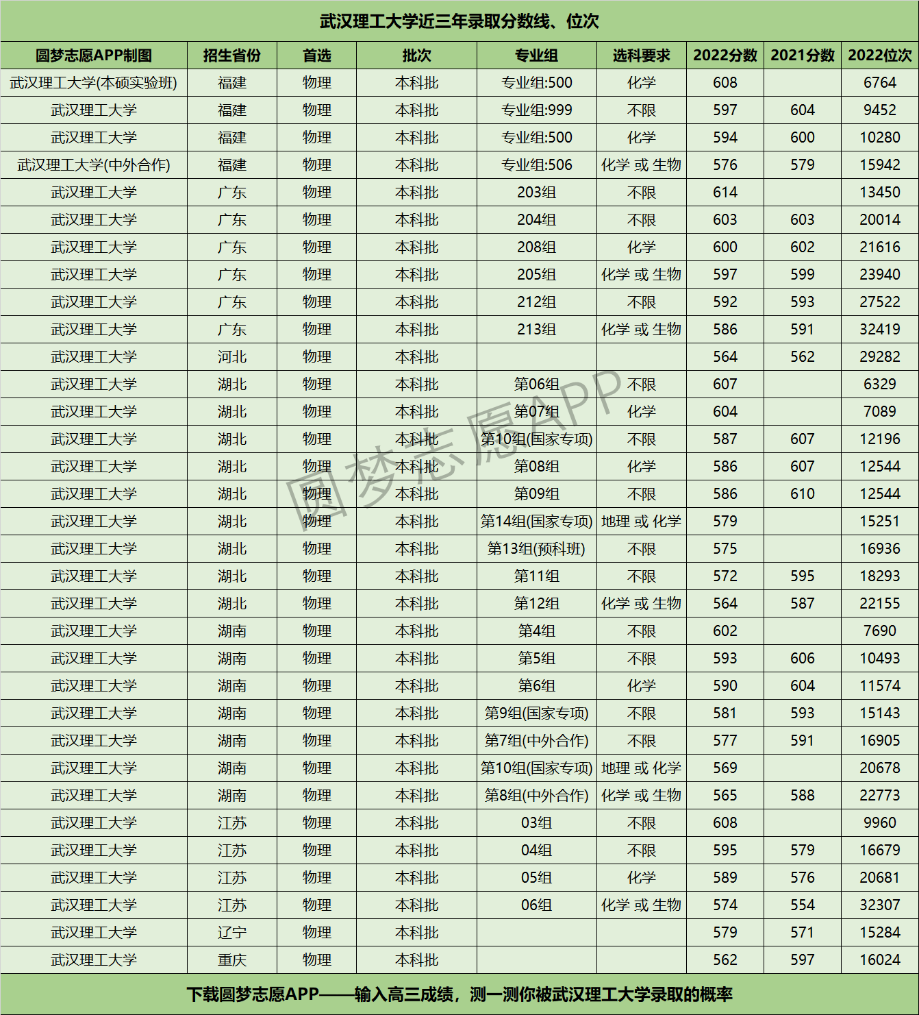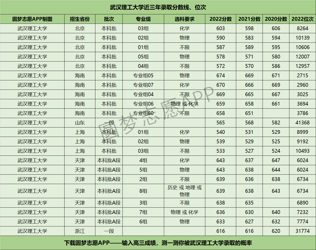 三、武汉理工大学近年录取分数线及位次【首选物理版】