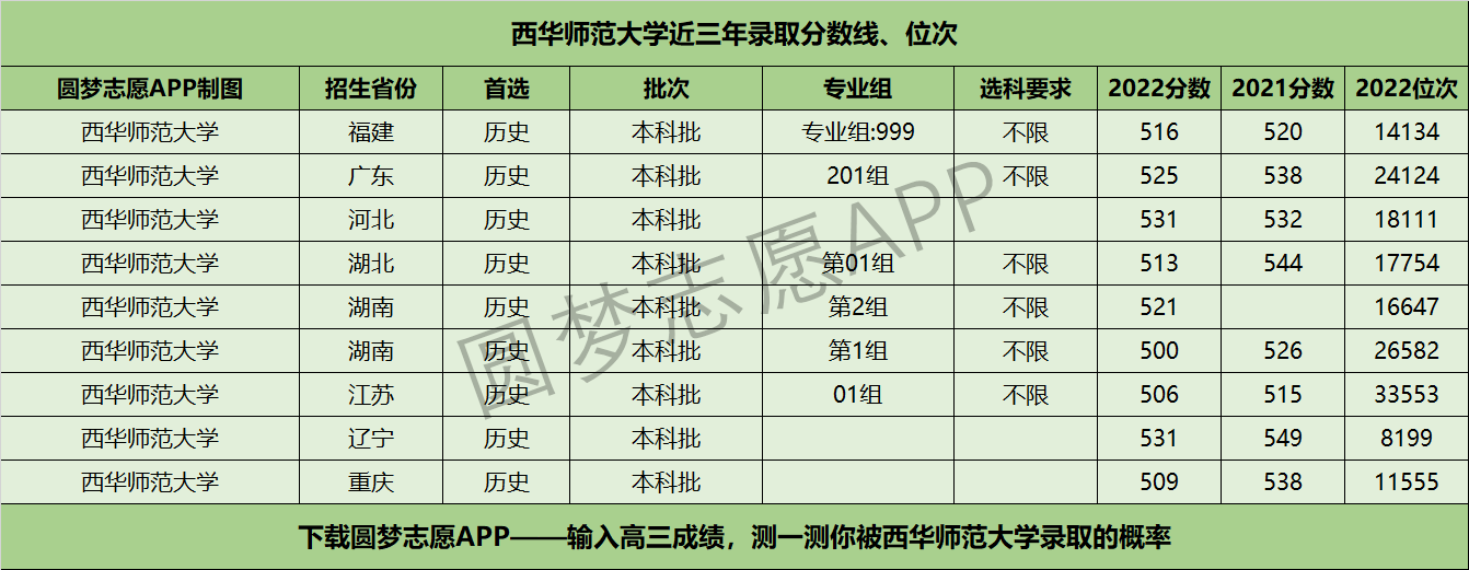 四、西华师范大学近年录取分数线及位次【首选历史版】