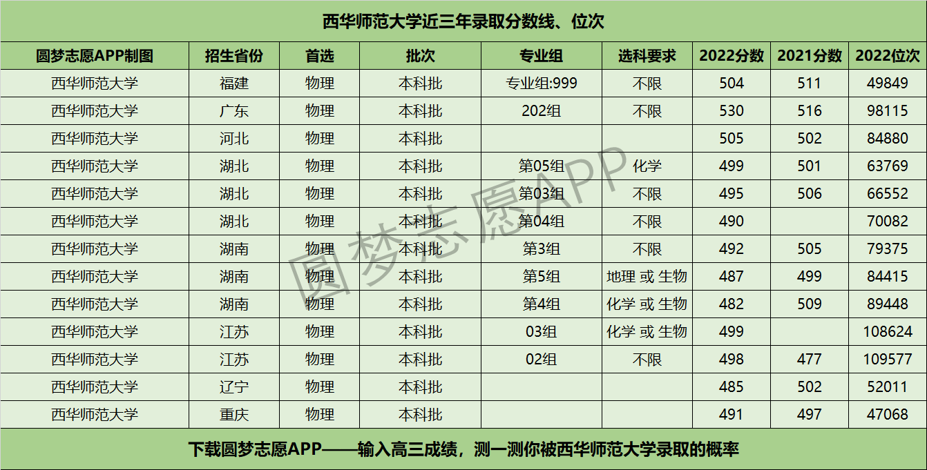 三、西华师范大学近年录取分数线及位次【首选物理版】