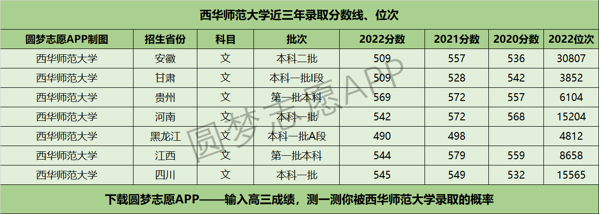 二、西华师范大学近三年录取分数线及位次【文科版】