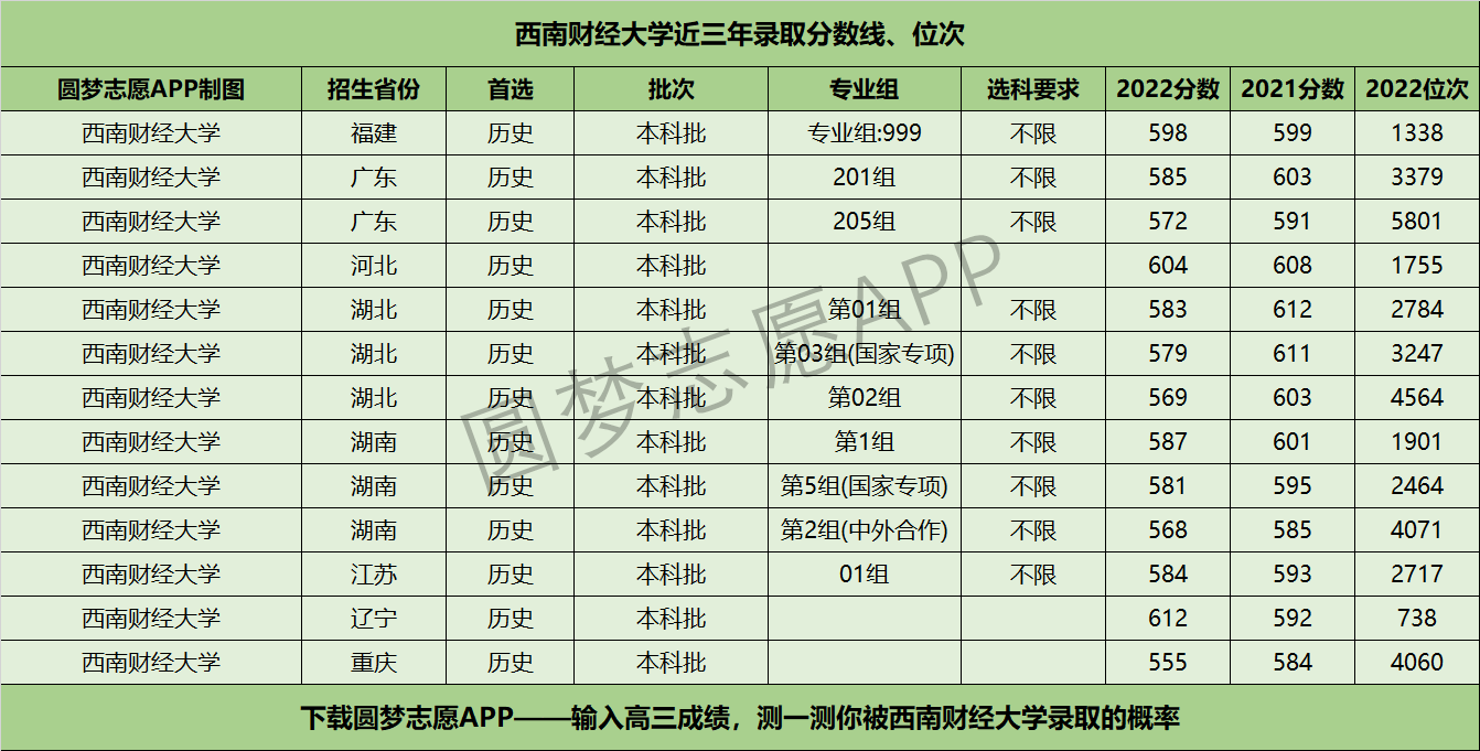 四、西南财经大学近年录取分数线及位次【首选历史版】