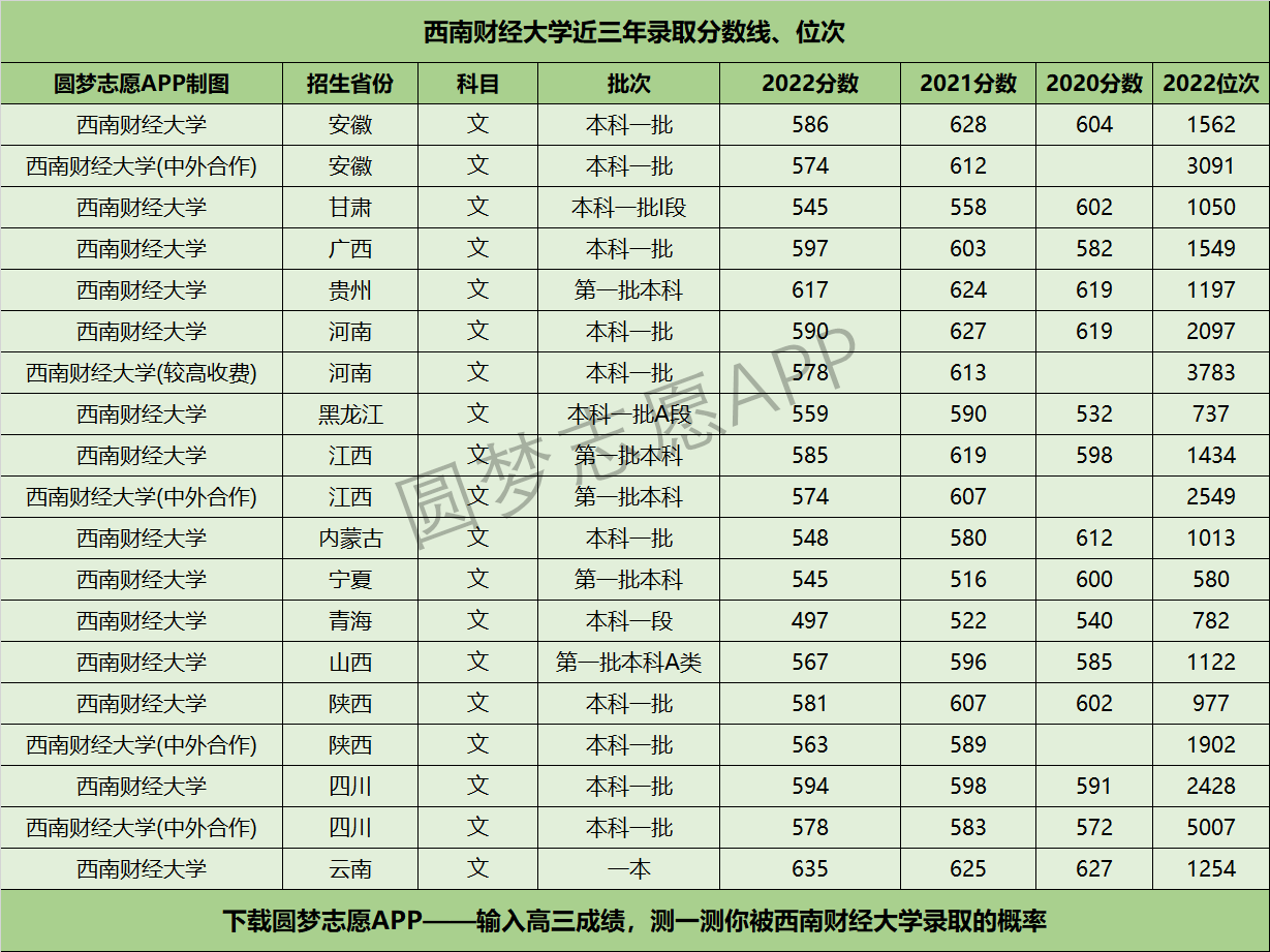 二、西南财经大学近三年录取分数线及位次【文科版】