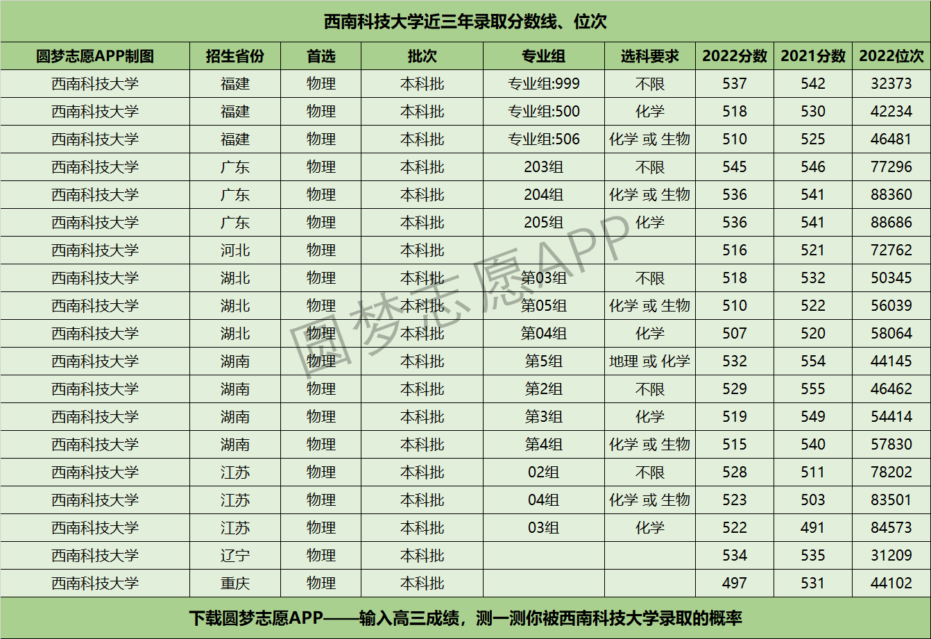 三、西南科技大学近年录取分数线及位次【首选物理版】