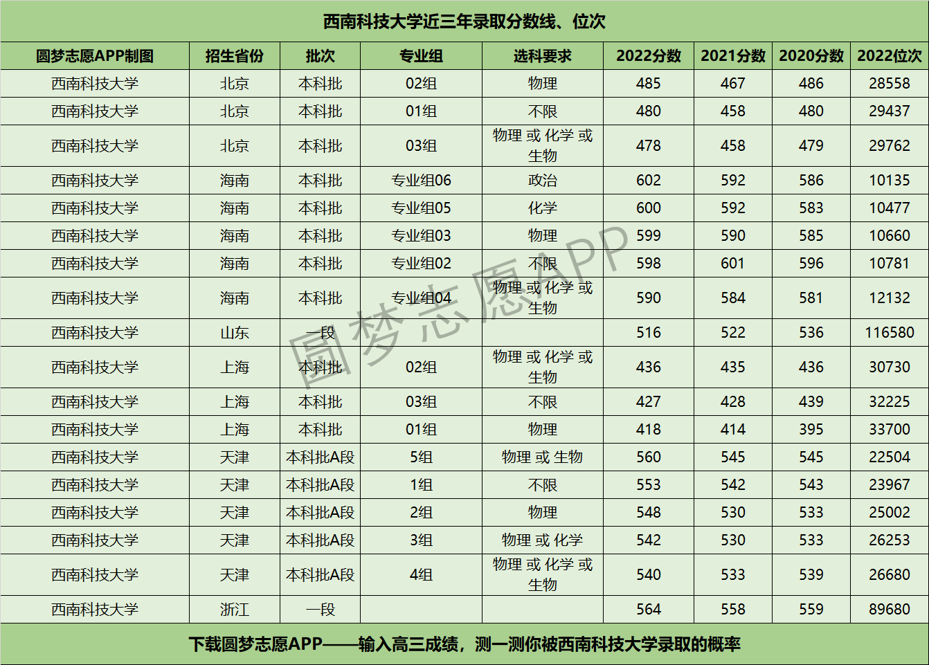 五、西南科技大学近年录取分数线及位次【6选3省份】