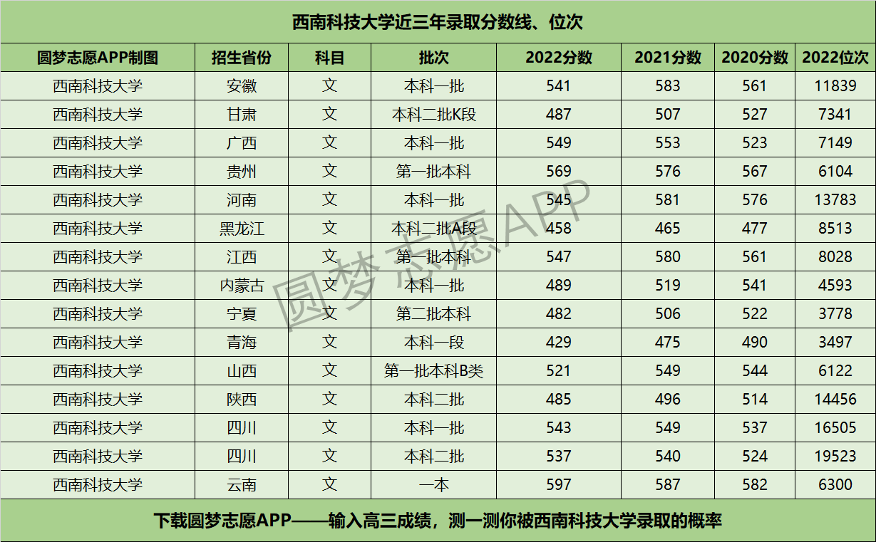 二、西南科技大学近三年录取分数线及位次【文科版】